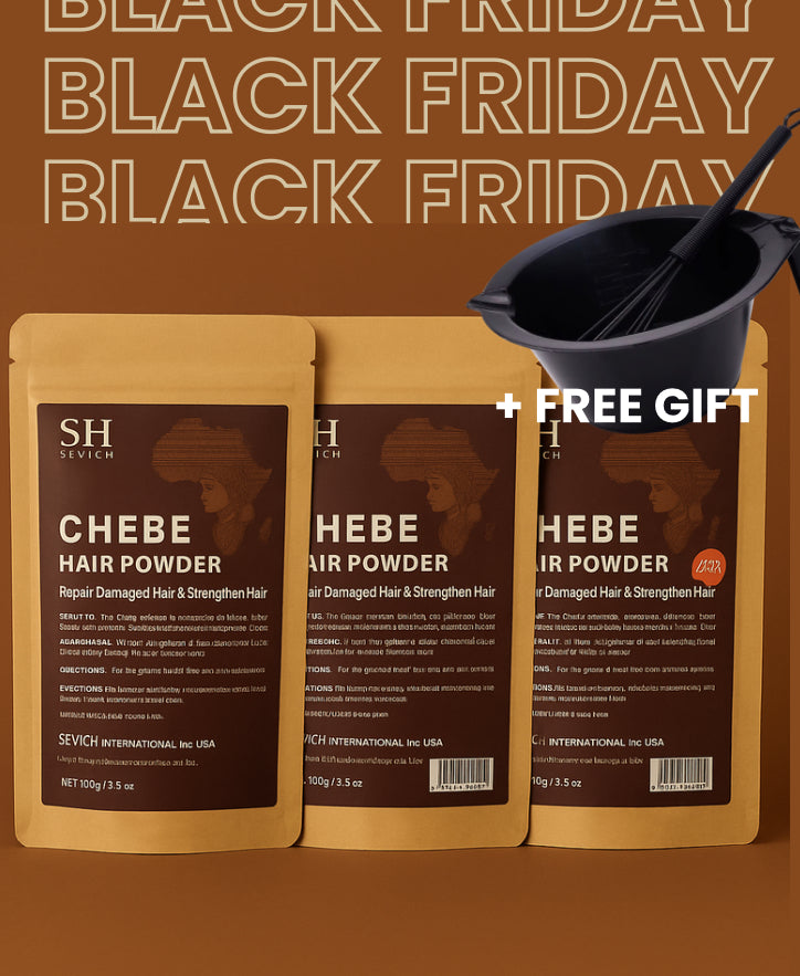 Chebe powder has been used for centuries by women in Chad, Africa, known for their incredibly long, healthy, and thick hair. This powerful blend of natural herbs is their time tested secret to retaining length, preventing breakage, and deeply nourishing the hair from root to tip.